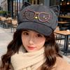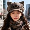 Autumn and Winter Retro Beret Women's Japanese Style Cute Cat Ears Octagonal Hat Big Head Circumference Showing Face Small Newsboy Hat Trendy