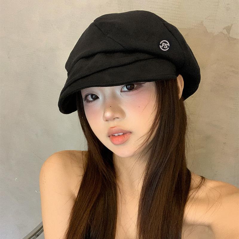 New Retro Pleated Hat Women's Autumn and Winter Beret Big Head Circumference Showing Face Small Newsboy Hat Octagonal Painter Hat