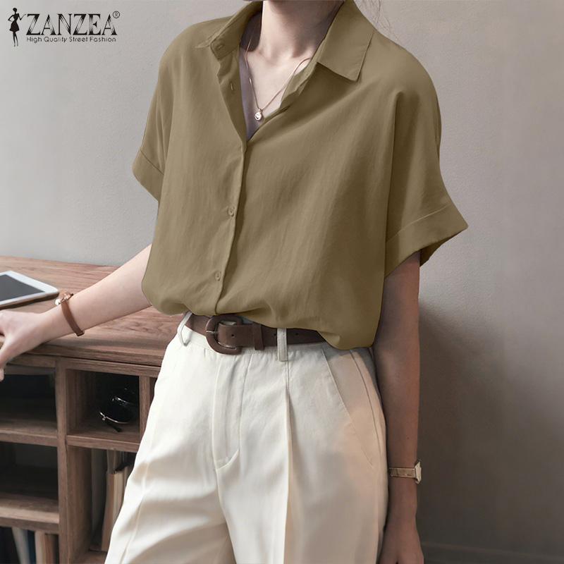 ZANZEA Women Summer Turn Down Collar Casual Short Sleeve Blouse