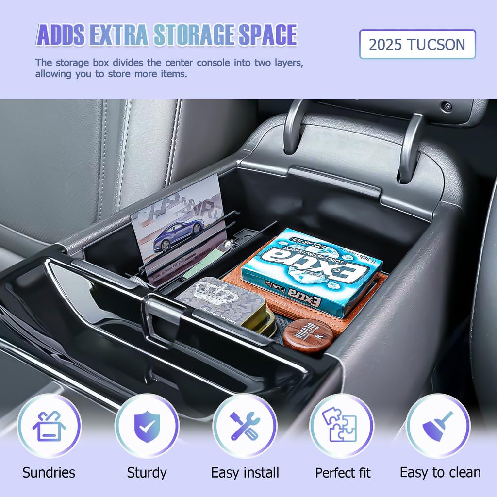 Armrest Storage Box for 2025 Hyundai Tucson Center Console Organizer Tray Secondary Car Storage Interior Car Box ABS Accessories