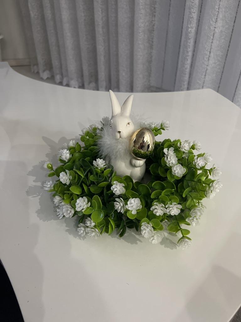 The wreath is neat, small, and pretty. However, there is a rather noticeable plastic smell; I hope it will air out.