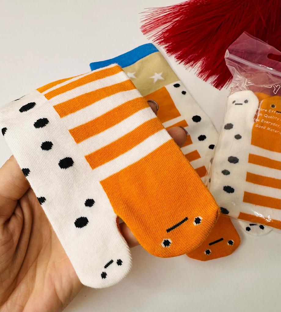 The unique toe-splitting design adds a touch of creativity and comfort, allowing your toes to move freely without feeling constricted. Featuring fun cartoon animal designs, these socks inject a playful charm into your everyday look, making them a must-have accessory for adding a touch of whimsy to your style.