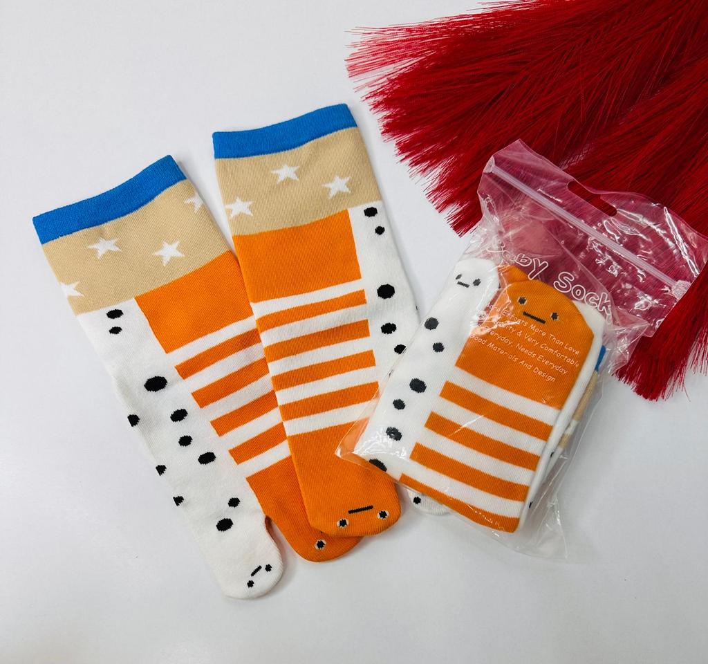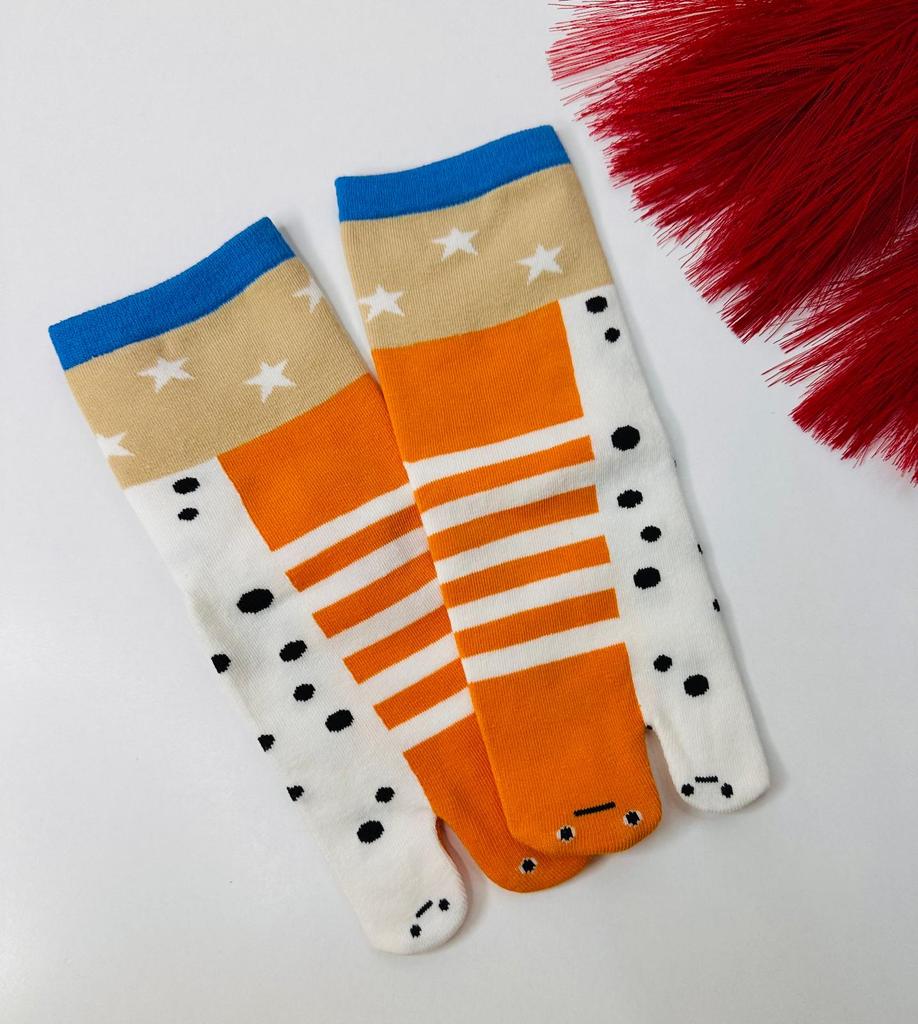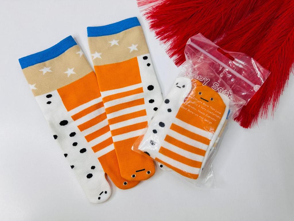 Introducing our vibrant strange socks! Stand out with a burst of contrasting colors including orange, white, and blue. These socks effortlessly elevate any casual footwear, adding a pop of brightness to your ensemble.