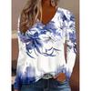 Spring and Autumn V-neck 3D Floral Graphic Printed Top Fashionable Casual Long Sleeved Women's T-shirts