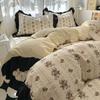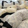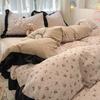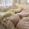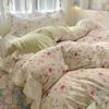 1.5/1.8 Korean Style 100% Cotton Fitted Sheet Sets with Lace Flower Print Bedding Set for Seasons Home Bedclothes for Adult Kids