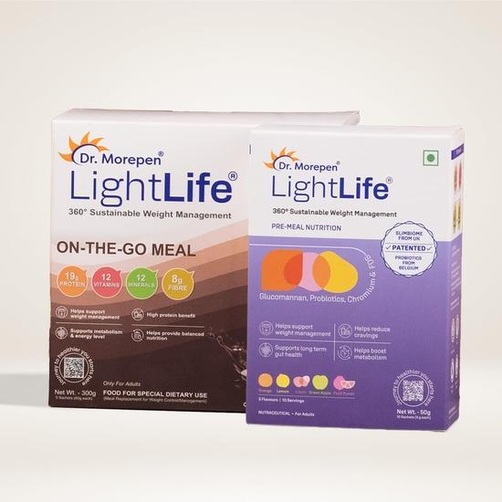 Dr. Morepen LightLife Power Combo by Dr.Morepen | Pre-Meal Mix (100 Sachets) & On-the-Go Meal (20 Sachets) | Ideal for Men & Women