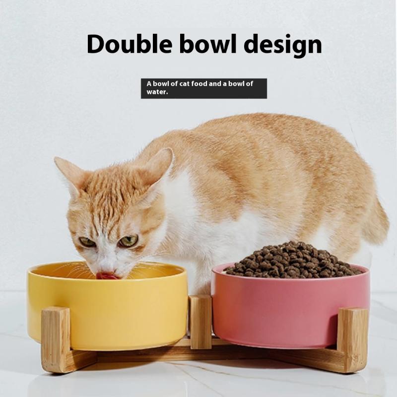 Ceramic Bowl Cat Dog Bowl Cat Food Bowl Cat Bowl Drinking Water Bowl Double Bowl Protection Cervical Spine Bowl Black Pet Bowl