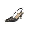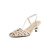 Fashion NEW Summer Women Sandals Cover Toe Strange Heel Shoes Genuine Leather Shoes Women Hollow Weave Ankle Strap Shoes Modern Sandals