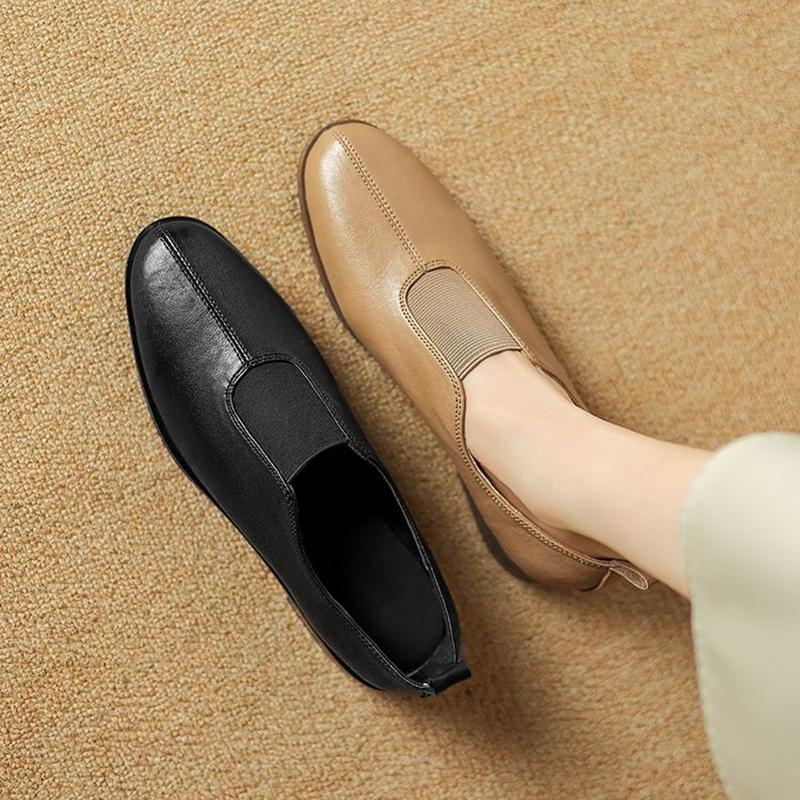 Fashion NEW Spring/Autumn Women Loafers Round Toe Chunky Heel Shoes Genuine Leather Shoes for Women Concise Splicing Slip-on Women Pumps