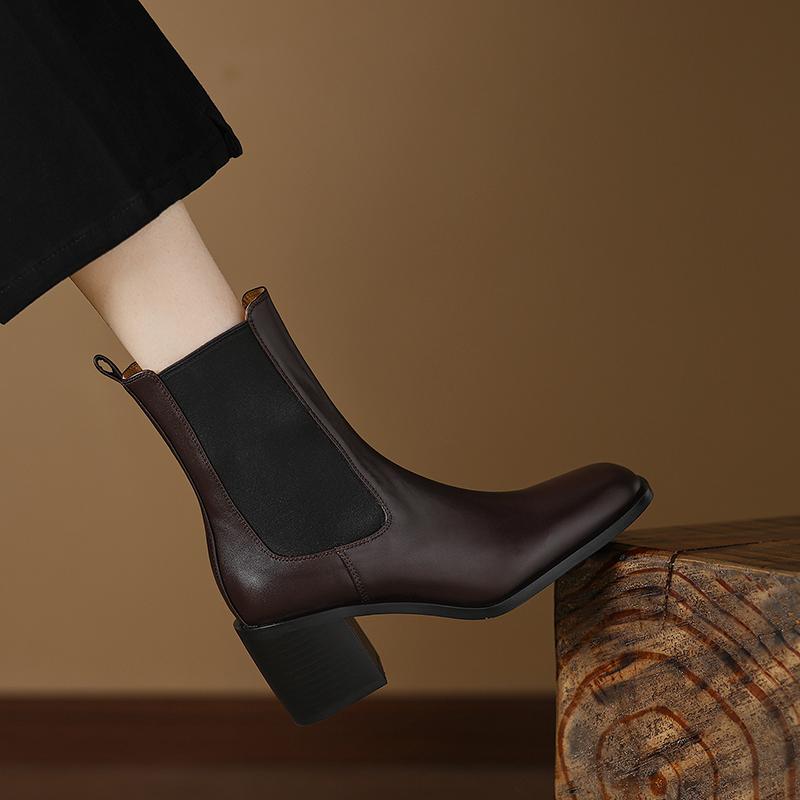 Fashion NEW Autumn Women Boots Square Toe Chunky Heel Shoes Genuine Leather Shoes for Women Short Modern Boots Daily Shoes Slip-on Boots