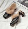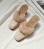 Fashion Autumn Winter Retro Square Toe Mules Women Warm Plush Fur Slippers Metal Thick Heel Slip On Flip Flops Comfort Furry Hair Slides