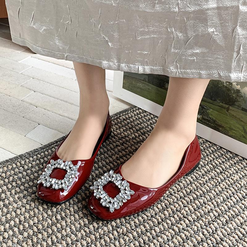 Fashion 2025 Light Women's Shoes Round Toe Women's Flats Daily Dress Flats Women Crystal Square Button Slip On Soft Bottom Ladies Shoes