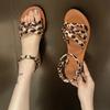 Fashion 2025 New Fashionable Flat Bottomed Shoes Leisure Anti Slip One Foot Beach Sandals Large Size Sexy Leopard Print Shoes for Women