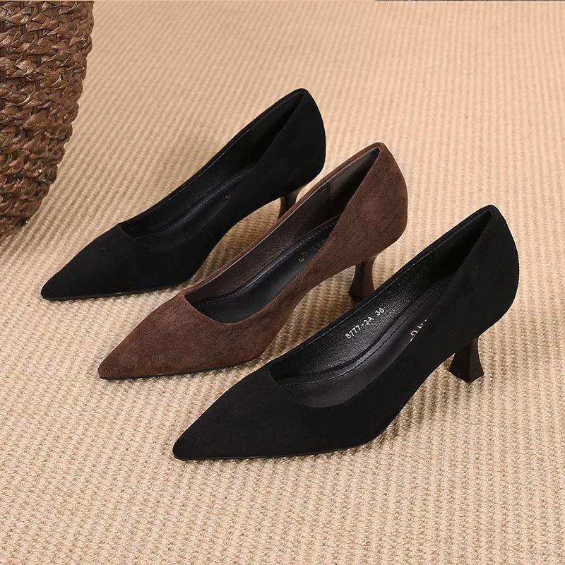 Fashion Elegant Ladies Flock Pumps Pointed Toe Brief High Heels OL Shoes Thin Heel Tacones De Mujer Shallow Mouth Chaussures Femme 2025