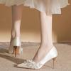 Sweet Classic Pumps Female Slip On Thin High Heels Pointed Toe Wedding Party Women Shoes Crystal Bling Flower Summer Shoes