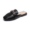 Spring Women New Slippers Flat Square Mule Outdoor Casual Shoes Korean Style Fashion Metal Chain Design Banquet And Office