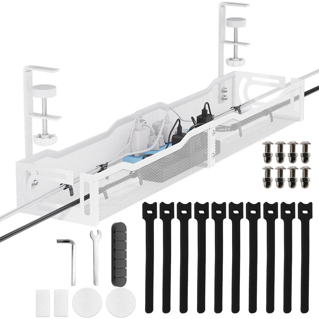 [Ventilated, Heat-Dissipating, Safe and Reliable]: The cable rack features a mesh structure for easy installation. It comes with a set of screws and bolts, a wrench, and a screwdriver. The cable holder effectively reduces dust accumulation and its excellent ventilation prevents overheating of devices. The under-desk storage design eliminates the need to hang or wrap cables and wires, keeping messy power strips and adapters off the floor and preventing them from being knocked over, touched, or chewed by children, cats, and pets, providing a safe and clean environment.
