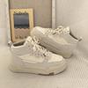 High-Top Board Shoe Women's Autumn and Winter New Rubber Soft Bottom Leather Color Matching Fashion Women's Casual Sneaker Mixed Batch