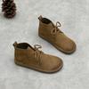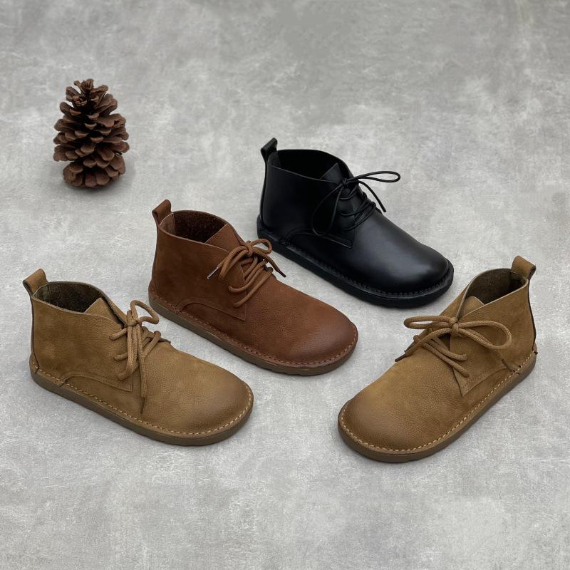 Johnature Genuine Leather Women's Shoes Soft Cowhide Round Toe Retro Soft Soled Lace-up Flat Short Boots
