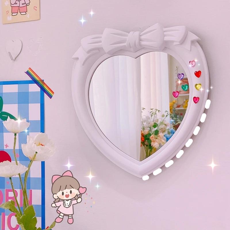 Kawaii Heart Shape Decorative Mirror INS Style Vintage Mirror Wall-mounted Mirror for Girls Bedroom Decoration 2025 Wholesales