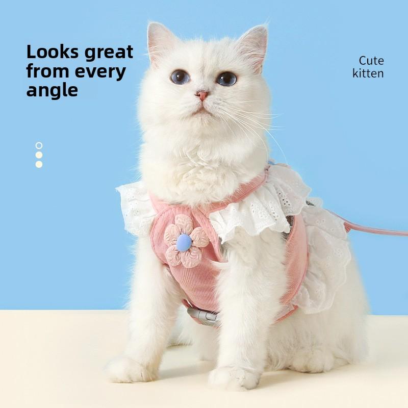 The Cat's Small Flower Leash Can Be Adjusted To Prevent The Cat From Breaking Free. It Is A Vest Type Cat Leash for Kittens and Young Cats To Walk