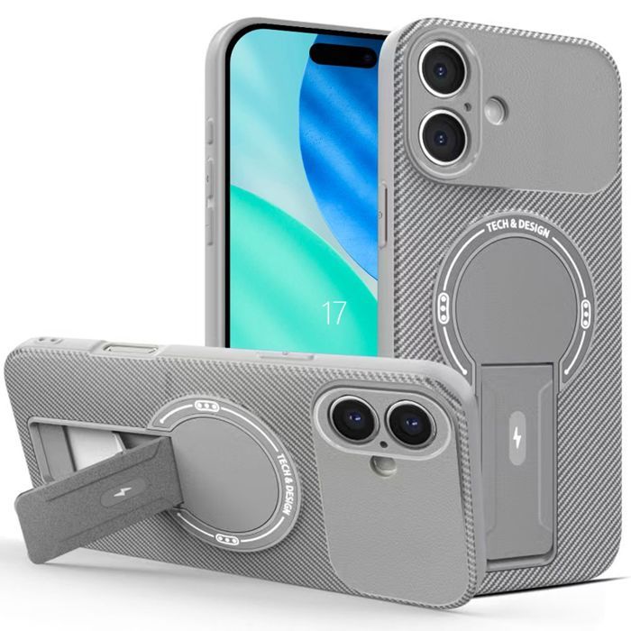 Protective Case - BOOLING - for iPhone 17 - Silicone with Magnetic Circle and Stand - Grey