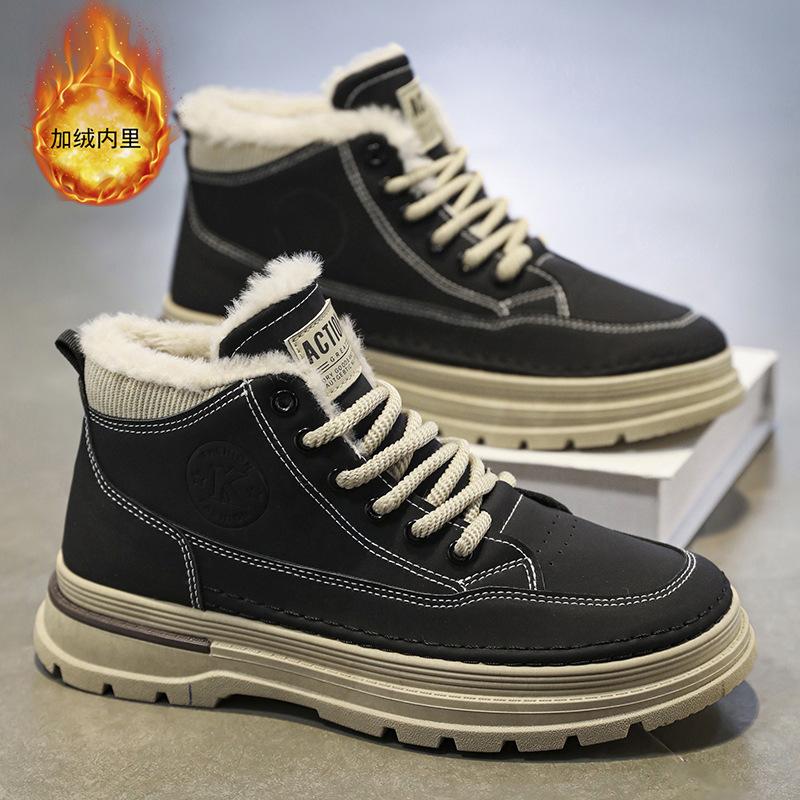 Winter Velvet Martin Boots Men's Trend Versatile High-top Tooling Shoes Thickened Warm Cotton Shoes Thick-soled Casual Short Boots