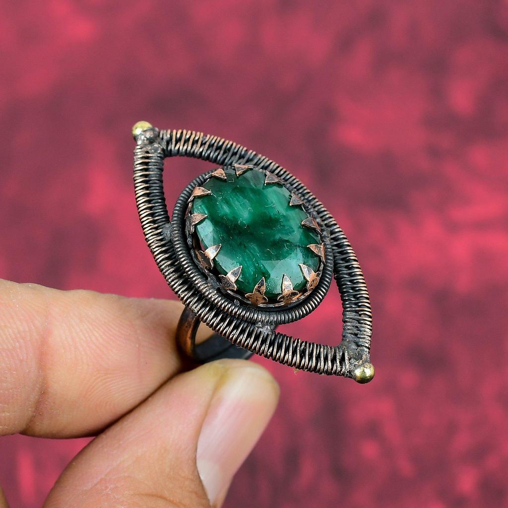 Faceted Zambian Emerald Ring Copper Wire Wrapped Jewelry Adjustable Ring Handmade Original Gemstone Ring Copper Wire Wrap Ring Gifts For Mom