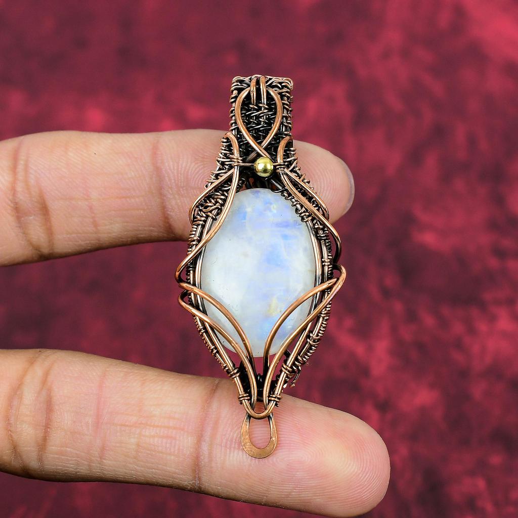 Rainbow Moonstone Pendant Copper Wire Wrapped Pendant Gemstone Handmade Jewelry Stylish Pendant Antique Copper Wire Jewelry Engagement Gifts