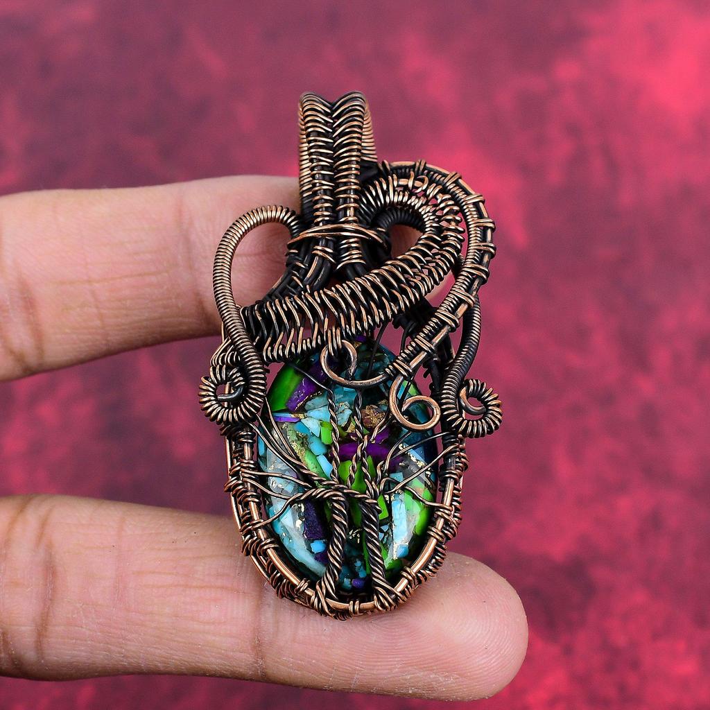 Tree of Life Fiesta Kingman Turquoise Pendant Copper Wire Wrapped Pendant Multi Copper Turquoise Gemstone Pendant Handmade Jewelry for Gifts