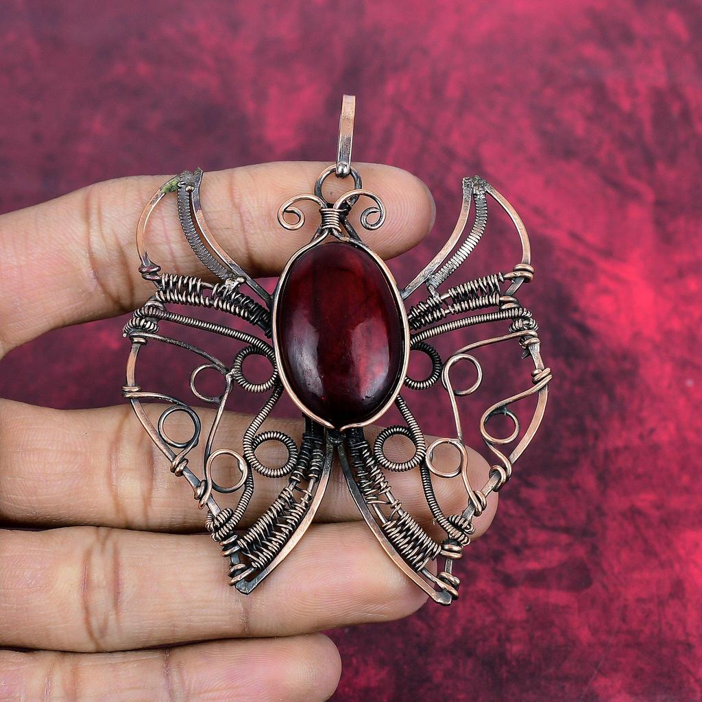 Red Fire Labradorite Pendant Copper Wire Wrapped Gemstone Pendant Handmade Jewelry Butterfly Pendant Engagement Gifts Antique Copper Jewelry