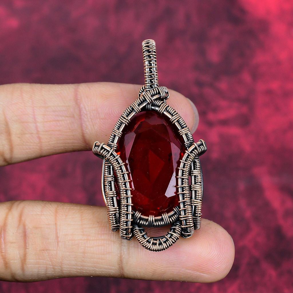 Faceted Mozambique Garnet Pendant Copper Wire Wrapped Pendant Gemstone Pendant Unique Copper Design Jewelry Handmade Pendant Gifts for Women