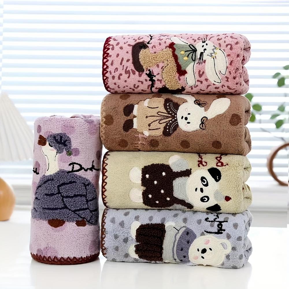 Autumn Winter Thickened Coral Fleece Quick-Dry Towels with Animal Embroidery Polka Dot Soft Bath Towels Set, Thanksgiving Gift Towels, Wash Cloths