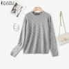 ZANZEA Womens Crew Neck Plaid Texture Casual Knitted Pullovers Sweaters Jumpers