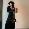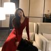 Niche Design Sense V-neck Red Knitted Dress Autumn and Winter New Temperament Sweater Skirt Annual Meeting Dress Skirt