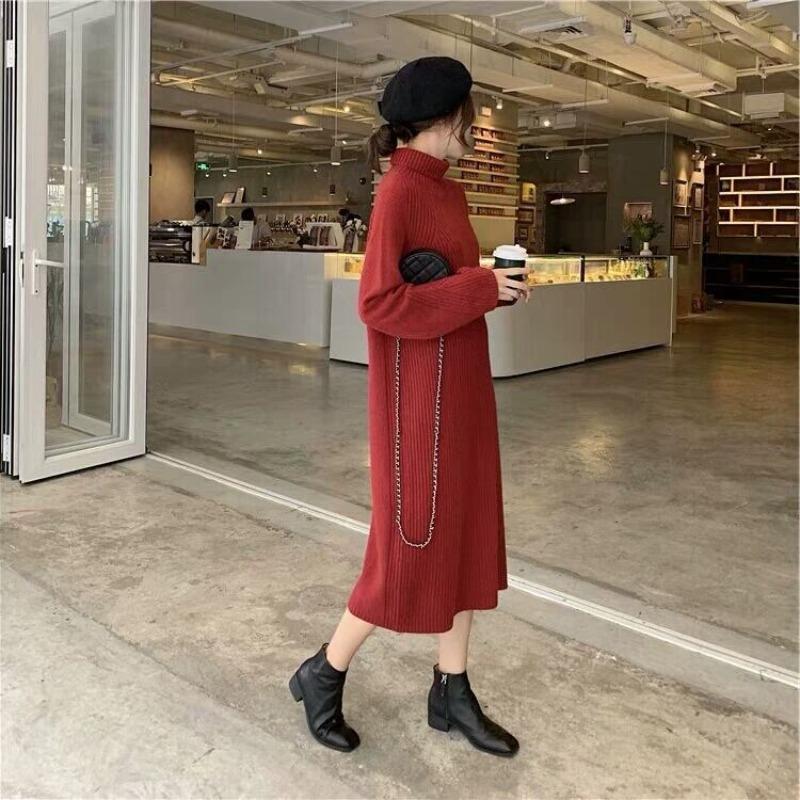Christmas Red Temperament Slim Fit with Bottom Sweater Knitted Dress Women's Autumn and Winter with Coat Long Skirt