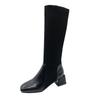 Socks Boots Elastic Thin Boots Soft Leather Retro Women's Spring and Autumn Thick Heel Medium Heel Knitted Thin