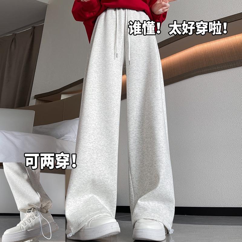Sweatpants Women's Autumn New High-waisted Casual Gray Sweatpants Small Loose Velvet Wide-leg Pants