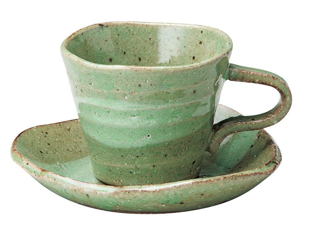 Soho Kiln Coffee Cup, Hiwa Nagashi Ripple Pattern, Cup and Saucer, Green, Cup Approx. 9 X 7.3cm (Approx. 200ml), Saucer Approx. 14 X 3cm,
