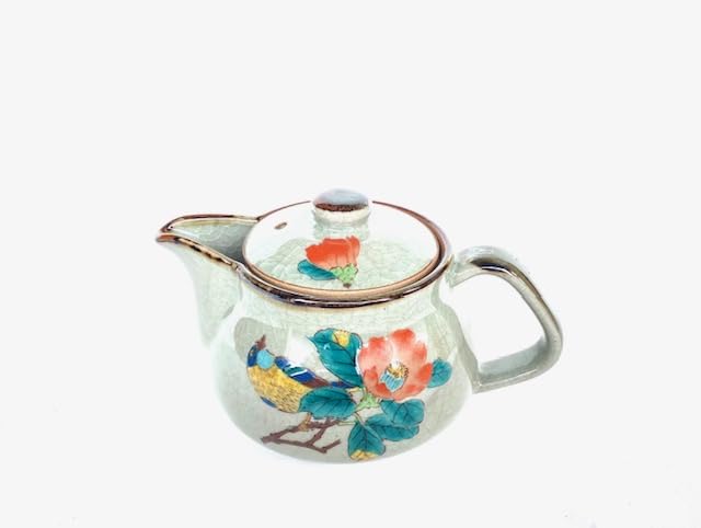Hyakukaen Kutani Teapot, Large, Camellia and Bird Design, Ceramic, Insulated, 350ml, Single Item