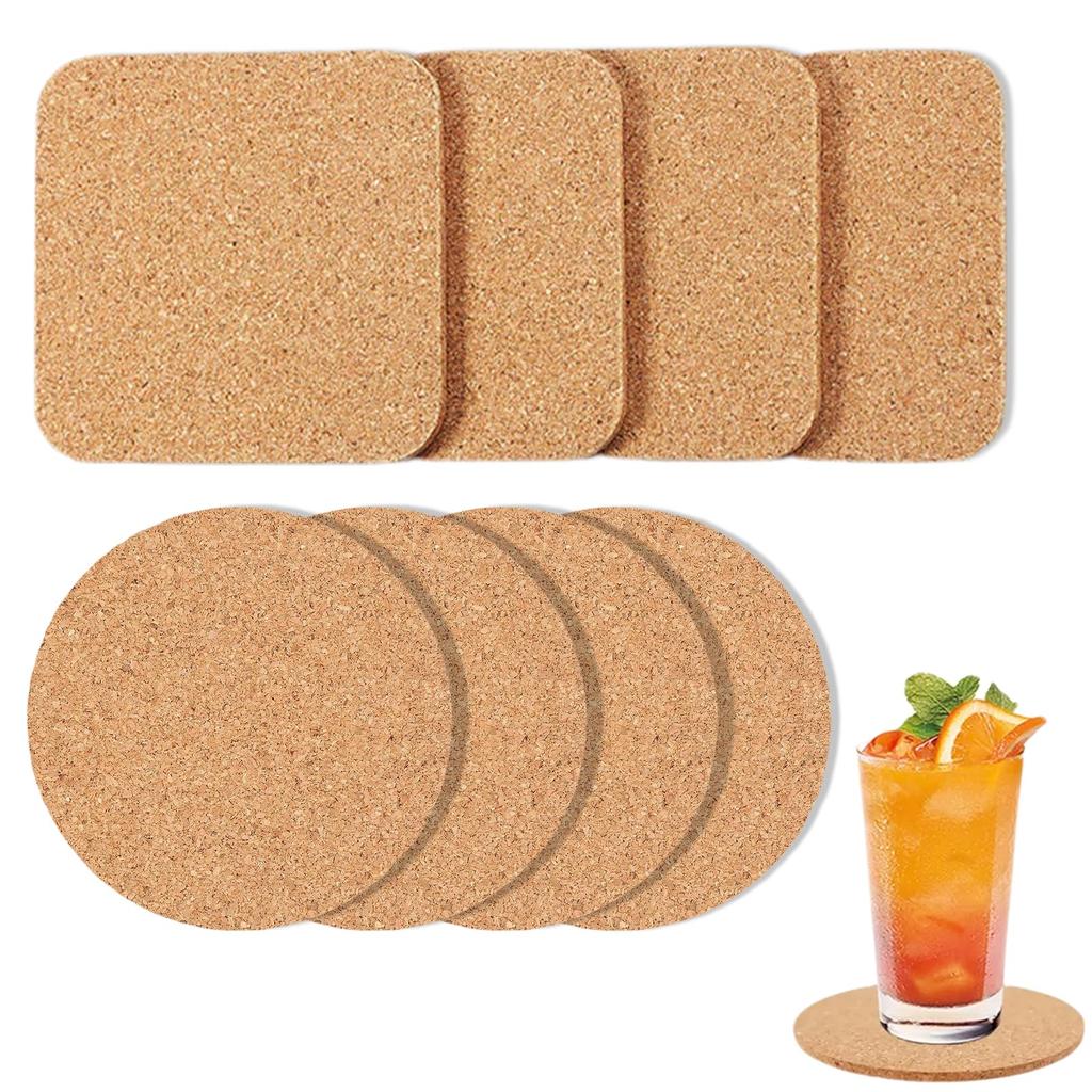 DELUXEFOX Cork Coasters, Wooden Coasters (8-Pack), RoundSquare, 100mm Diameter, 5mm Thick, Coffee Table Coasters, Drink Coasters, Heat-Resistant,