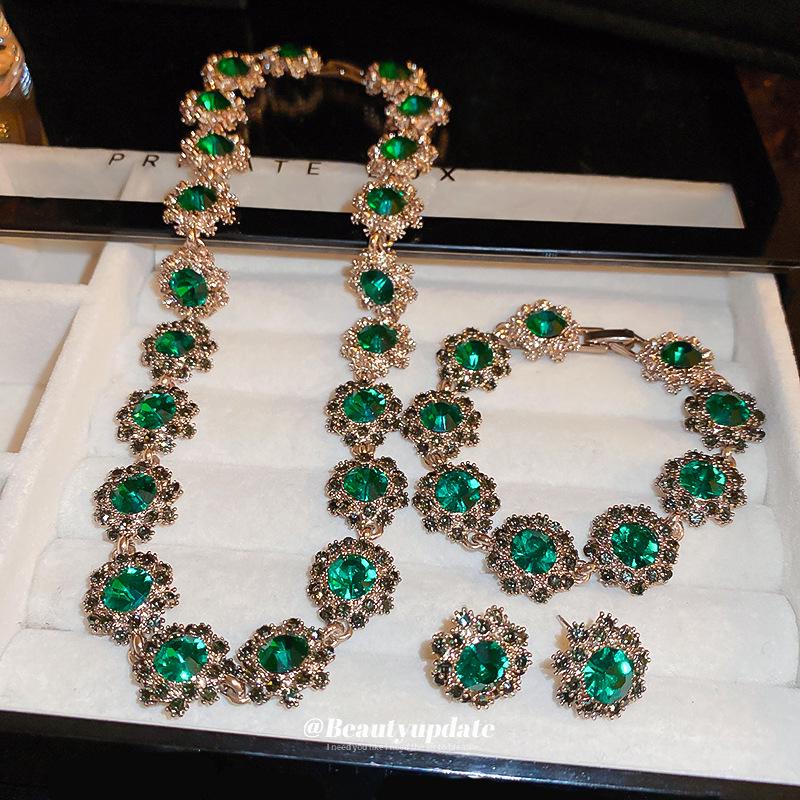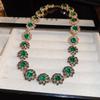Green Rhinestone Flower Buckle Necklace - Elegant Circle Choker for Women