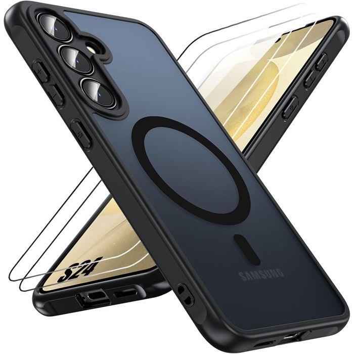 Protective Case - BOOLING - for Samsung Galaxy S24 - Shockproof - Matte Black - 2 Tempered Glasses