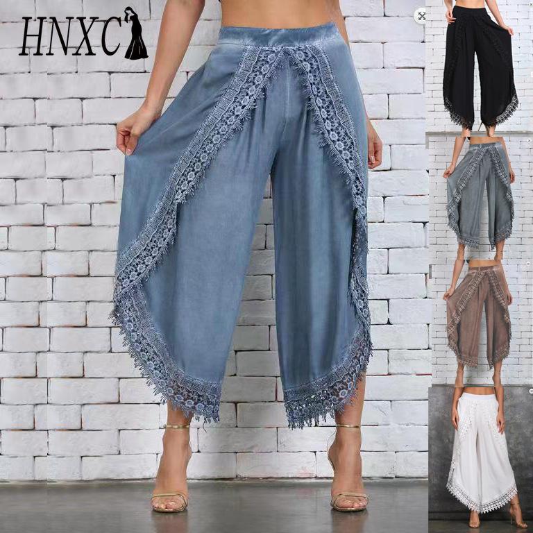 HNXC Women's Fashion Casual Solid Color Print High Waist Trousers Pants & Capris