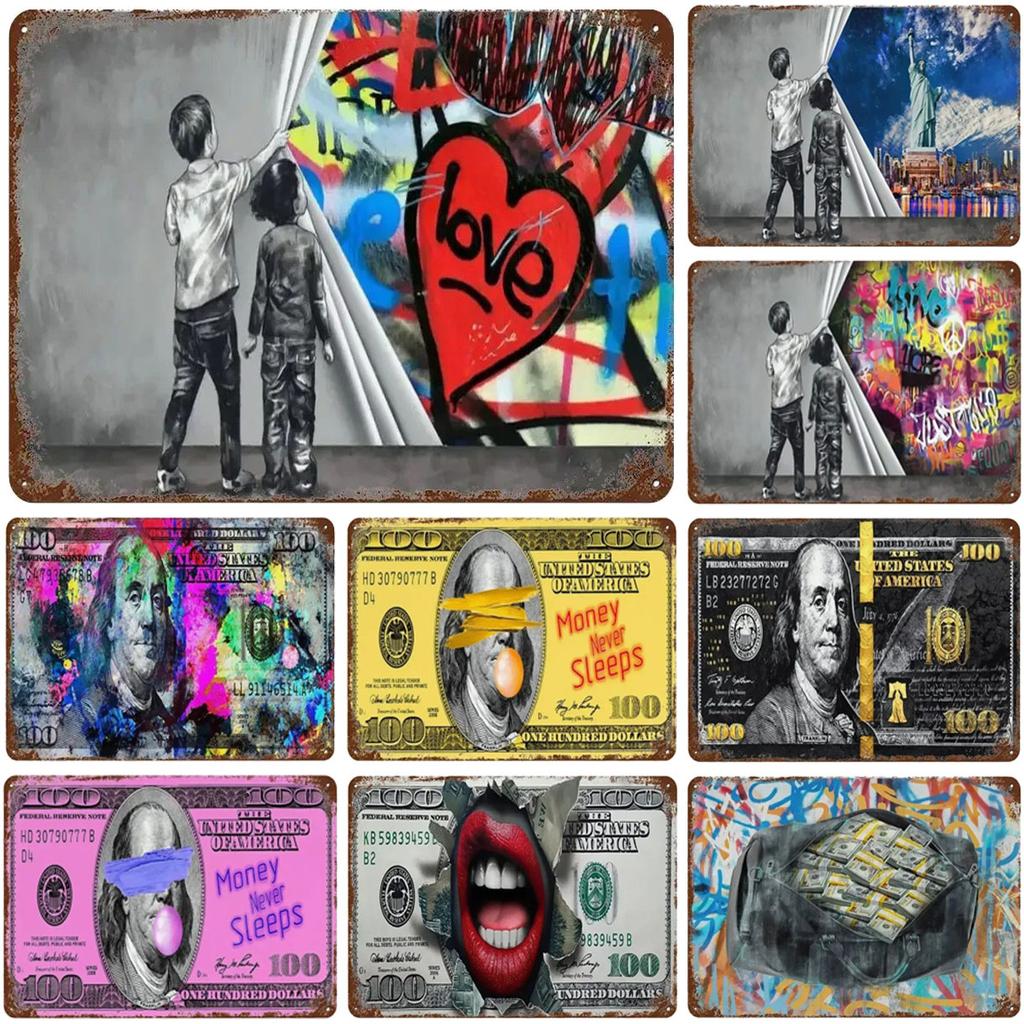 American US Dollars Metal Tin Signs Posters Plate Wall Decor for Restaurant Game Room Garage Bars Cafe Clubs Retro Poster Plaque
