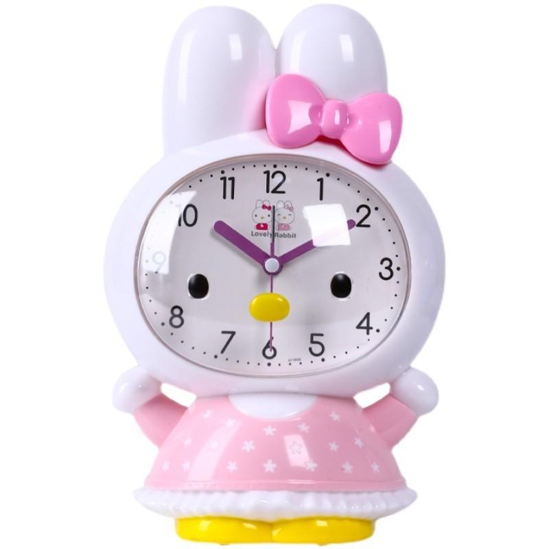 Children's Cute Cartoon Rabbit Dual Music Alarm Clock Home Bedside Silent Sweep Second Snooze Night Light Clock Electronic