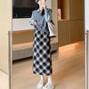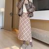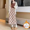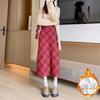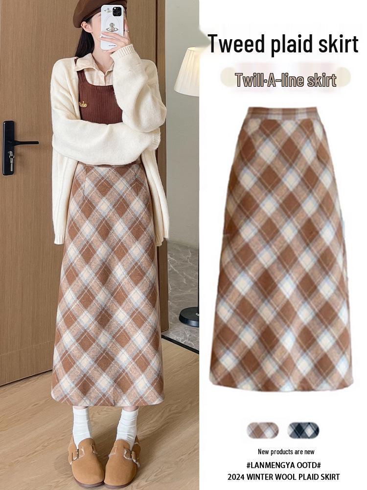 Autumn-Winter High Waist Wool Plaid A-Line Midi Skirt