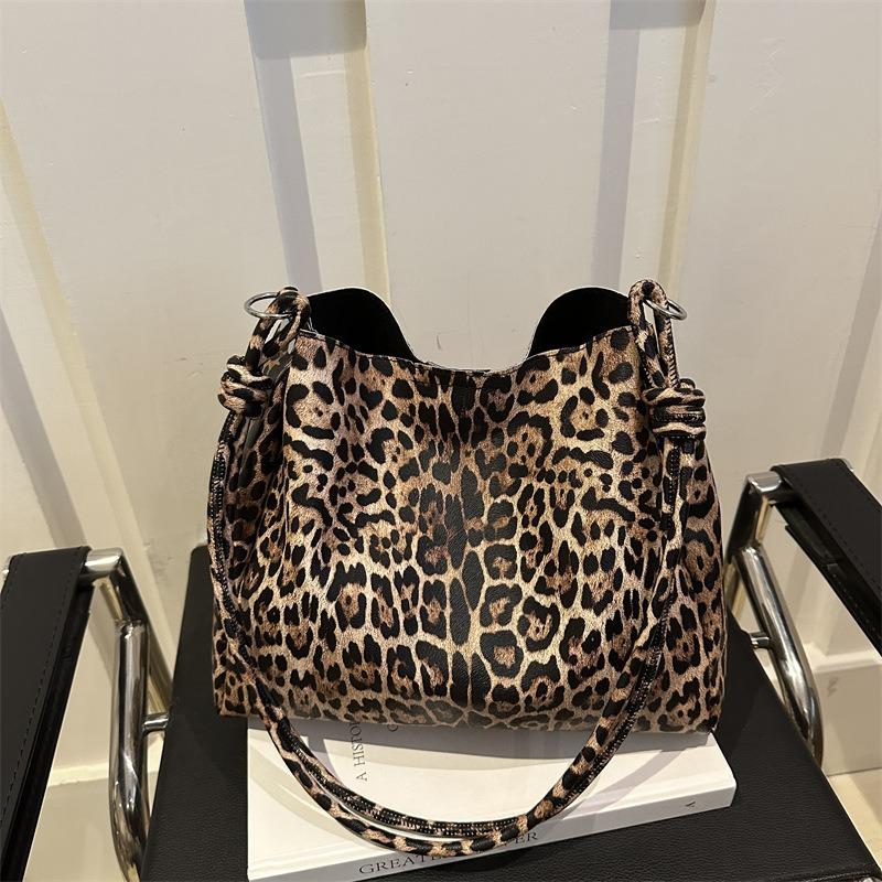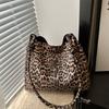 Shoulder Bag Retro Fashion Simple Texture Large Capacity Leopard Print Trendy Cool Babes Casual Commuter Tote Bucket Bag Women