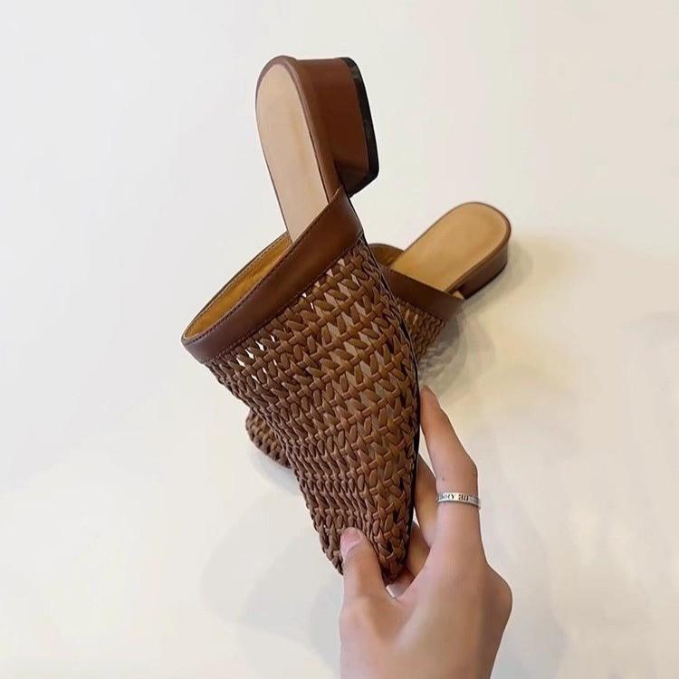 Woven One-pedal Bag Head and Half Slippers Women's 2025 Summer New Fashionable and Versatile Outer Wear Sports and Leisure Cool Slippers