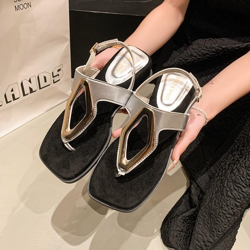 Summer Super Good-looking Thick-soled Small Slope Heel Pinch Toe Roman Sandals Women's Summer Outer Wear with Skirt 2025 New